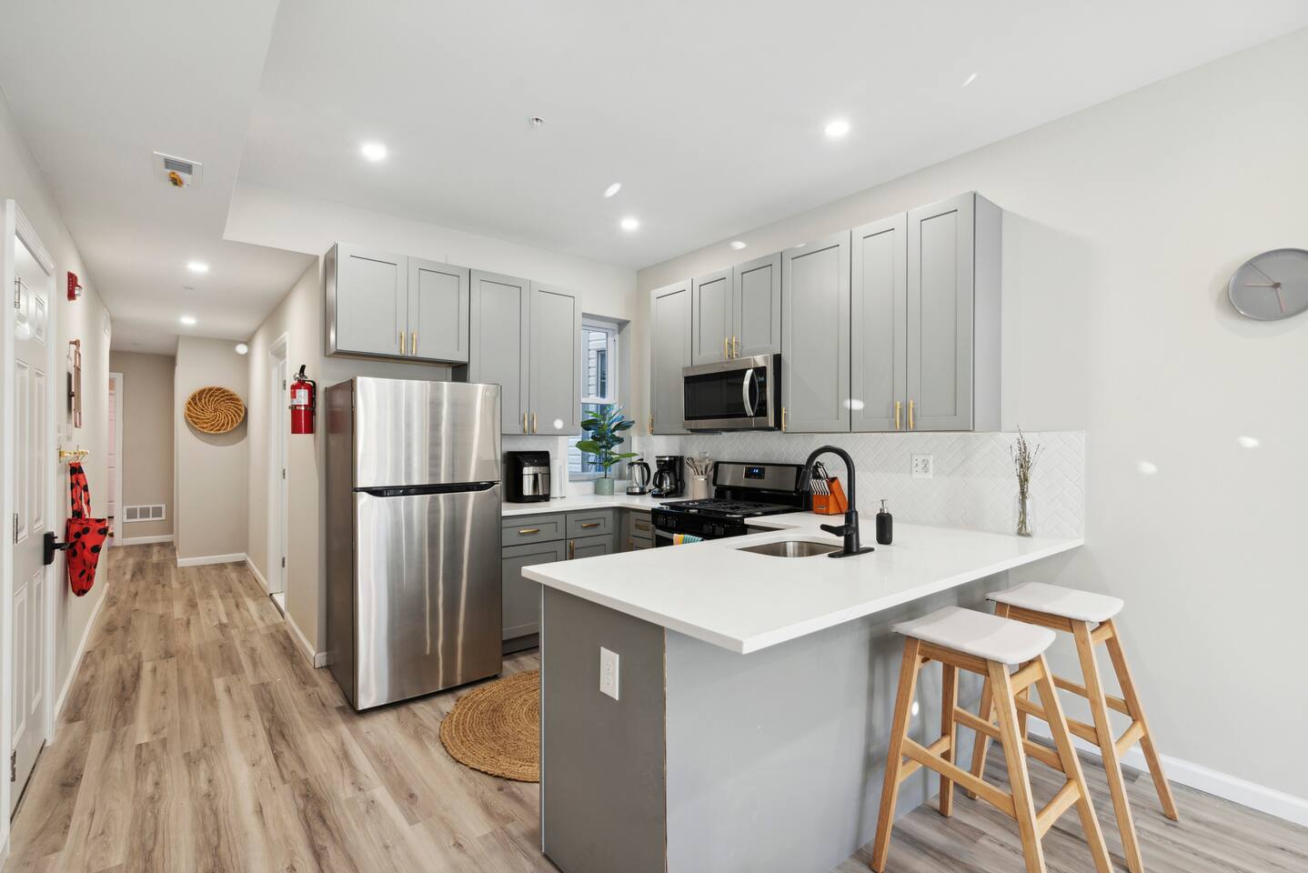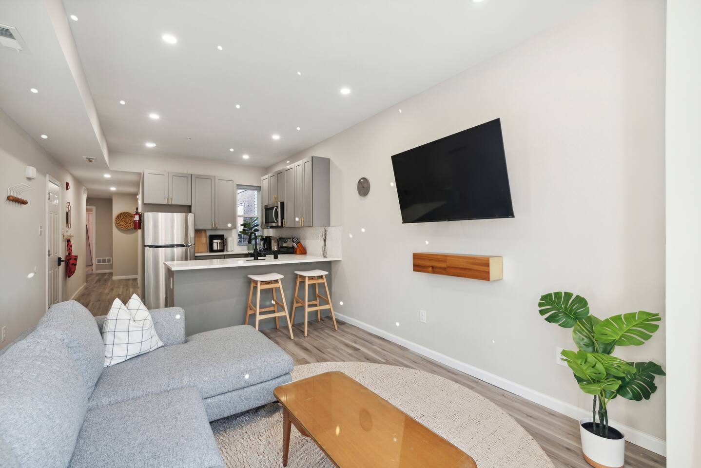 Newly renovated with modern amenities yet surrounded by 1920s architecture, this apartment is the perfect retreat after a day of exploring or working in the city. It's been beautifully furnished with a modern eclectic style. Ready for you to unwind in comfortable bedding and crisp white linens. Relax in the open-concept living and kitchen area, where you'll have a beautiful view of the historic Georgian revival-style apartment building on the comfy sofa. The kitchen is fully stocked and perfect for cooking a home-cooked meal while still entertaining. The matte black and brass fixtures really make the grey cabinets pop. The kitchen includes all stainless steel brand new appliances, a coffeemaker, an air fryer, and an electric tea kettle. The bathroom has all your essentials and features a brand-new walk-in shower. There is a dedicated office with a door equipped with a monitor and HDMI cord for all of your remote work needs. There is a 55-inch smart tv in the cozy living room. You will have access to popular apps such as Netflix, Prime Video, HBO Max, and Disney+. Use your personal logins to access these apps.