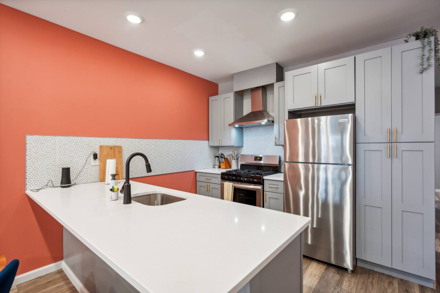 As you step into our inviting apartment, you'll immediately notice the warm and welcoming atmosphere. The spacious living area is tastefully decorated, creating a relaxing ambiance for you to unwind after a day of exploring the city. Kick back on the comfortable sofas and catch up on your favorite shows on the large flat-screen TV. The apartment boasts two beautifully appointed bedrooms, each on separate floors of this bi-level unit, and each with a private bathroom for maximum privacy. Sink into the plush bedding and let your cares drift away. With ample closet space and storage, you’ll have plenty of room to unpack and make yourself feel at home during your stay. Hosting extra guests or kids? Our cozy sofa bed in the living room has you covered for a great night's sleep! The fully equipped kitchen is a true gem for those who love to cook. Prepare delicious meals with ease using the modern appliances and ample counter space. Enjoy your culinary creations at the dining table, creating lasting memories with your loved ones. Situated in the heart of West Philadelphia, our apartment offers the perfect location for exploring the city. Immerse yourself in the local culture, visit the nearby attractions, and discover the vibrant culinary scene. With convenient access to public transportation, you can easily venture into Center City or other popular destinations. When you're not out and about, take advantage of the apartment's amenities and enjoy some downtime. Stay connected with high-speed Wi-Fi, catch up on your favorite shows or movies on the provided streaming services, or simply relax with a good book in one of the cozy corners. Our goal is to ensure your stay is as comfortable and enjoyable as possible. We're here to provide recommendations, answer any questions you may have, and make sure you have a memorable experience in West Philadelphia. Book your stay with us today and get ready to immerse yourself in the vibrant energy of this fantastic city. We can't wait to welcome you to our private apartment and provide you with an unforgettable stay in West Philadelphia!