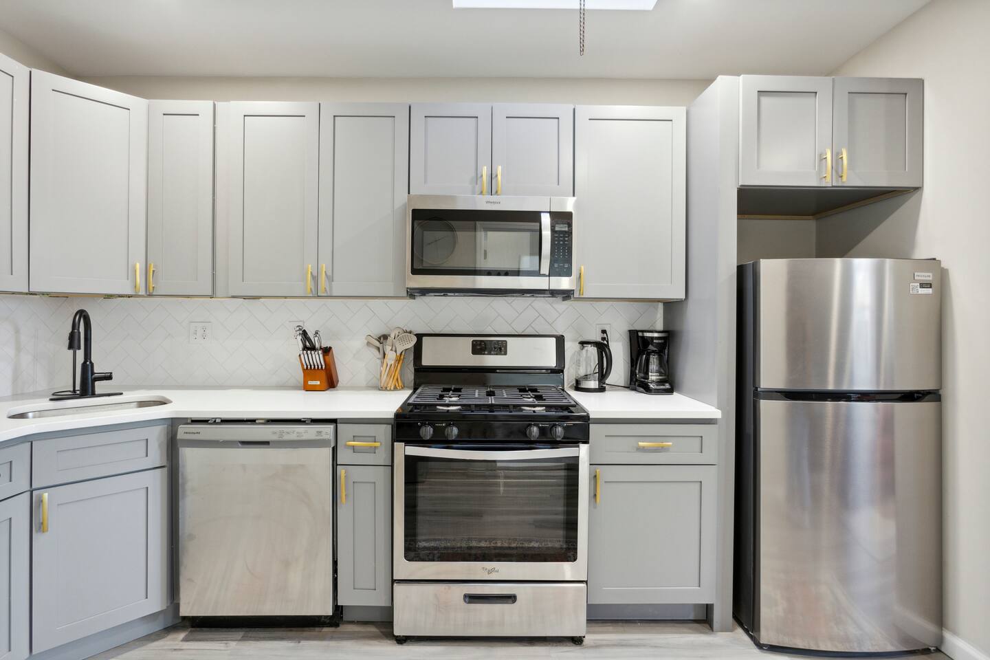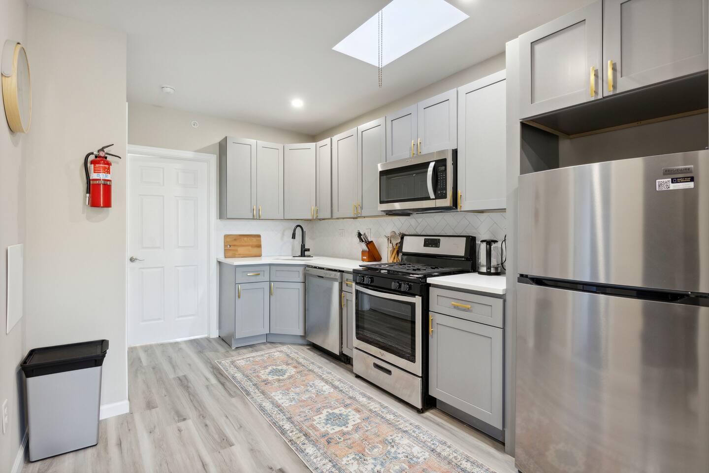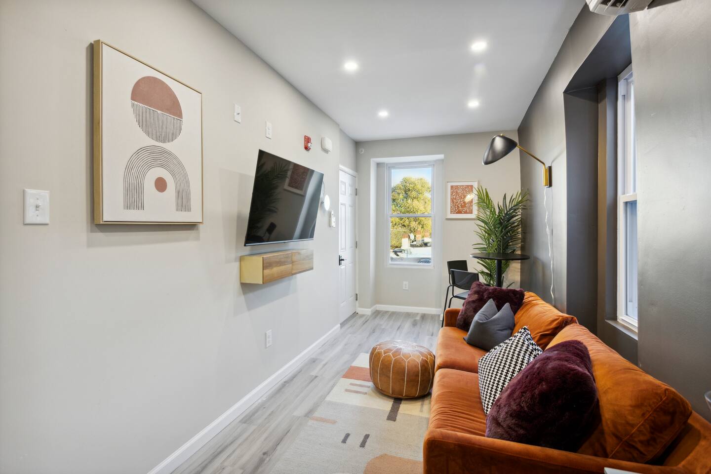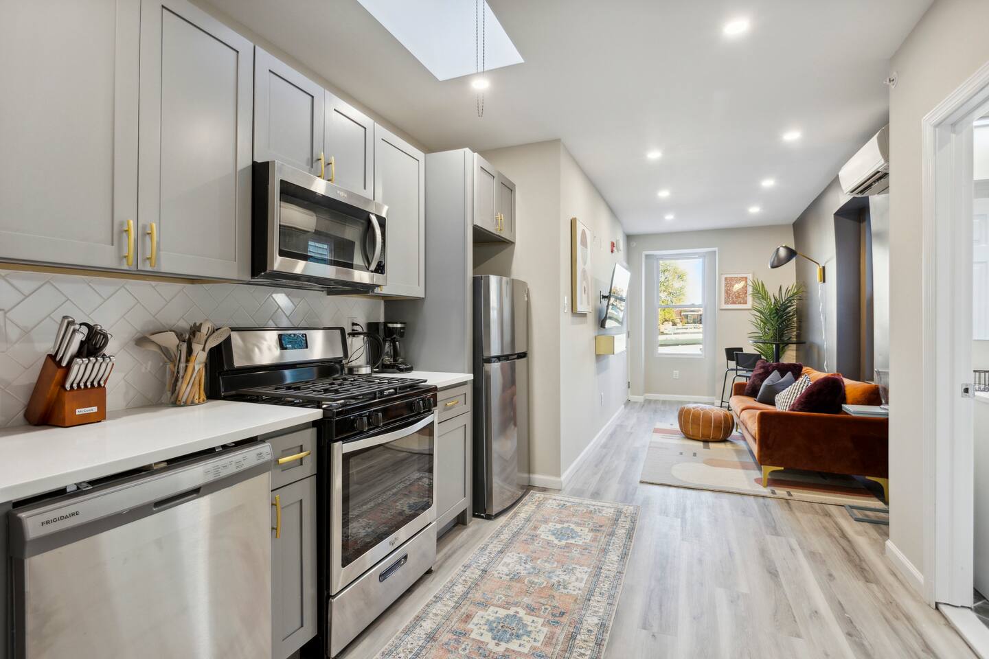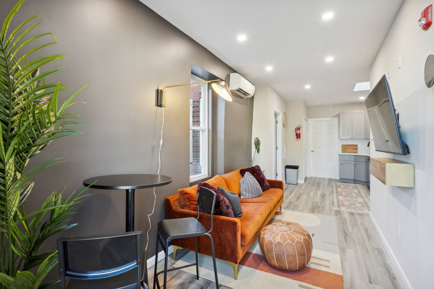 This apartment has been completely renovated and beautifully furnished with modern eclectic style. Unwind in our cozy and comfortable bedding and crisp white linens. Relax in our snug living room with a smart flat-screened television and sofa. The open-concept dining room and the kitchen are perfect for cooking a home-cooked meal while still entertaining. The matte black and brass fixtures really make the grey cabinets pop. The kitchen includes all stainless steel brand new appliances and a coffeemaker for all your coffee/tea needs. The bathroom is fully stocked and with all essentials and features a brand new walk-in shower. There is a 50 in smart tv in the living room. You will have access to popular apps such as Netflix, Amazon Prime, and Disney+. Use your personal logins to access these apps.
